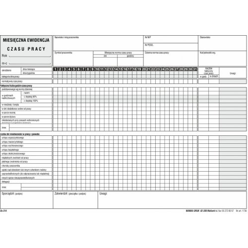 0202 Karta ewidencji czasu pracy miesięczna