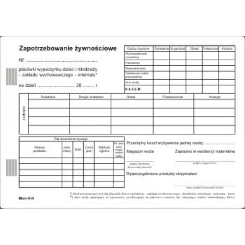 0162 Zapotrzebowanie żywieniowe MEN -V/4