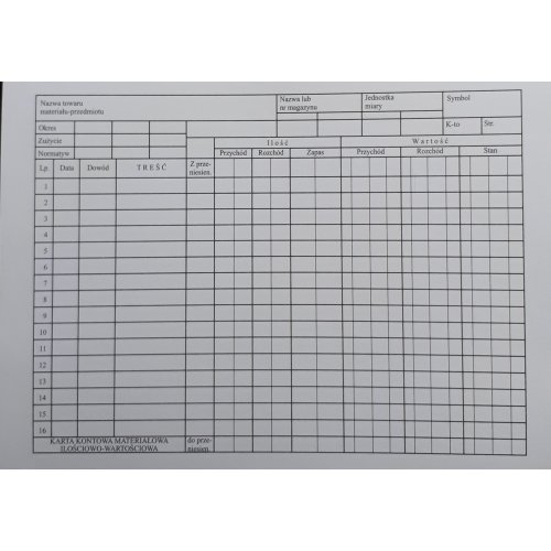 0160 Karta kontowa materiałowa ilościowo -wartościowa