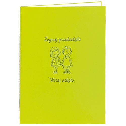 W skład zestawu wchodzą: -eksluzywna, sztywna oprawa w formacie A4 wykonana ze skóry ekologicznej (napis i grafika na froncie wytłoczone złotą folią na gorąco), -kolorowa wkładka format A3 z napisem dyplom ukończenia przedszkola (można zastąpić ją dyplomem w formacie A4) -postać do wyboru (przyklejana na gąbce - efekt 3D) -dwie zakładki do środka A -cztery zakładki do środka B