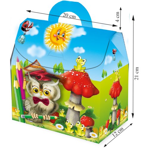 • Wymiary: Domek - wys. 21 cm + rączka 4 cm, dł. 12 cm, szer. 20 cm