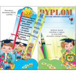 Dyplom składa się z czterech elementów: - błyszczącej sztancowanej okładki z dwiema wewmętrznymi zakładkami, - dyplomu wkładki z tekstem, - 2 zakładek do książek: z cytatem o książkach (wym. 216x40 mm)
