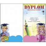 Dyplom składa się 5 elementów: błyszczącej sztancowanej okładki z dwiema wewnętrznymi zakładkami, dyplomu wkładki z tekstem, zakładki z planem lekcji, zakladki do książki z życzeniami oraz kartonowej linijki + GRATIS medal kartonowy - słońce ze wstążką o średnicy 9 cm (różne kolory do wyboru)