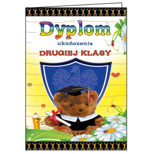 Każdy nasz dyplom dla drugoklasisty z tej serii charakteryzuje się wesołą, bardzo przyjazną szatą graficzną z edukacyjnymi akcentami, która idealnie trafia w gusta najmłodszych. To, co najbardziej wyróżnia te dyplomy ozdobne, to ich otwierana forma. Kompaktowy dyplom B5 po złożeniu wygląda jak elegancka karta okolicznościowa. Taka pamiątka szkolna to fantastyczny upominek dla ucznia, który wspaniale prezentuje się wyeksponowany na półce w domowym archiwum.