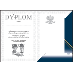 • Eleganckie uszlachetnienie: Zewnętrzna strona okładki jest lekko nabłyszczana, co pięknie eksponuje głębię kolorów i nadaje jej ekskluzywny charakter. Tył dyplomu (plecki) jest w pełni zadrukowany w kolorze i graficznie dopasowany do frontu.