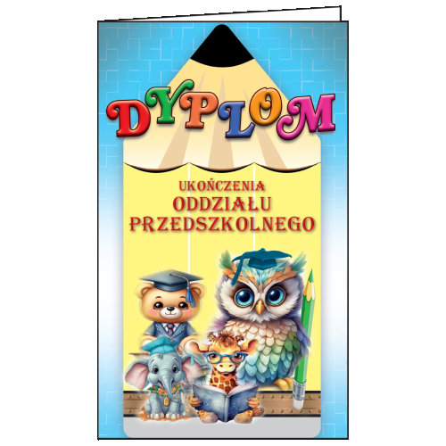 Dyplom składa się z pięciu elementów: błyszczącej sztancowanej okładki z dwiema wewnętrznymi zakładkami, 3 zakładek do książek oraz drewnianego ołówka wpiętego w kartonową tarczę.