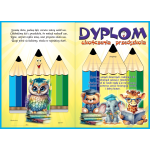 W skład zestawu wchodzą: -eksluzywna, sztywna oprawa w formacie A4 wykonana ze skóry ekologicznej (napis i grafika na froncie wytłoczone złotą folią na gorąco), -kolorowa wkładka format A3 z napisem dyplom ukończenia przedszkola (można zastąpić ją dyplomem w formacie A4) -postać do wyboru (przyklejana na gąbce - efekt 3D) -dwie zakładki do środka A -cztery zakładki do środka B