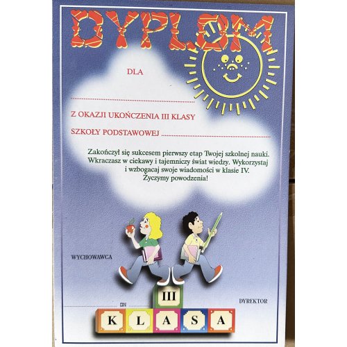 Ukończenie trzeciej klasy to niezwykle ważny moment, symbolizujący oficjalne pożegnanie z edukacją wczesnoszkolną. Aby godnie uczcić ten dzień, polecamy nasz tradycyjny, pojedynczy dyplom ukończenia 3 klasy. To nie tylko oficjalny druk, ale przede wszystkim ponadczasowa pamiątka dla ucznia, która pięknie podsumowuje jego dotychczasowe osiągnięcia i trud włożony w naukę. Uroczyste wręczenie takiego wyróżnienia to wspaniała nagroda na koniec roku szkolnego, stanowiąca doskonały i motywujący upominek dla ucznia 3 klasy. Wybierając profesjonalne dyplomy szkolne, masz pewność, że zakończenie trzeciej klasy zyska odpowiednią, pełną szacunku oprawę.