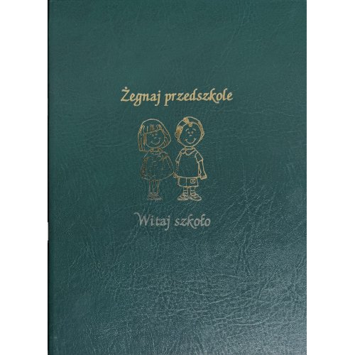 W skład zestawu wchodzą: -eksluzywna, sztywna oprawa w formacie A4 wykonana ze skóry ekologicznej (napis i grafika na froncie wytłoczone złotą folią na gorąco), -kolorowa wkładka format A3 z napisem dyplom ukończenia przedszkola (można zastąpić ją dyplomem w formacie A4) -postać do wyboru (przyklejana na gąbce - efekt 3D) -dwie zakładki do środka A -cztery zakładki do środka B