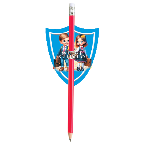 Kolorowy drewniany ołówek z gumką (18,6 cm) wpięty w kartonową tarczę, wys. - 7,3 cm