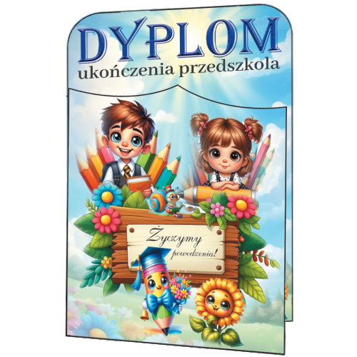 Format A4 po złożeniu: Dyplom ma formę eleganckiej, otwieranej książeczki (format A3 złożony do A4). Taki rozmiar nadaje mu powagi i sprawia, że wręczenie go podczas uroczystej akademii jest dla dziecka jeszcze bardziej wyjątkowe.