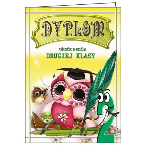 Każdy nasz dyplom dla drugoklasisty z tej serii charakteryzuje się wesołą, bardzo przyjazną szatą graficzną z edukacyjnymi akcentami, która idealnie trafia w gusta najmłodszych. To, co najbardziej wyróżnia te dyplomy ozdobne, to ich otwierana forma. Kompaktowy dyplom B5 po złożeniu wygląda jak elegancka karta okolicznościowa. Taka pamiątka szkolna to fantastyczny upominek dla ucznia, który wspaniale prezentuje się wyeksponowany na półce w domowym archiwum.