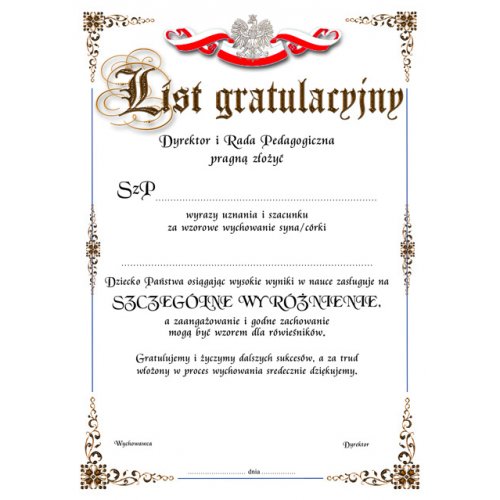 List gratulacyjny A700