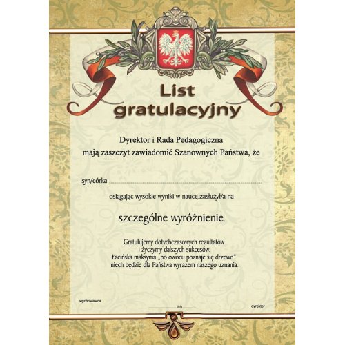List gratulacyjny A943