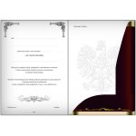 Nabłyszczana teczka z 2 solidnymi skrzydełkami podtrzymującymi dokumenty (świadectwo). Tekst wdrukowany w środku.