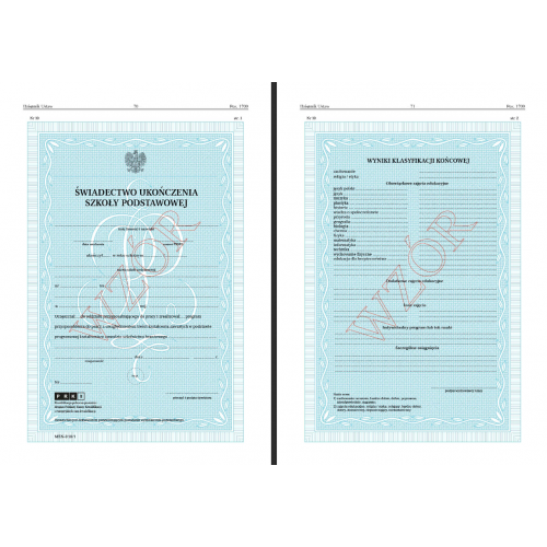 0043OLD Świadectwo ukończenia s.p. przyspos. MEN-I/10/1