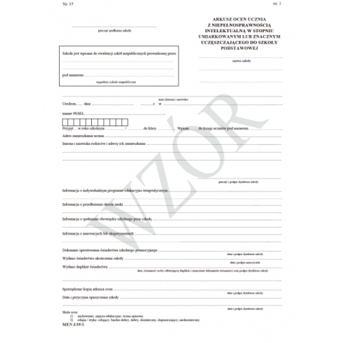 0061 Arkusz ocen dla ucz. z niepełnosprawnością MEN -I/35/1